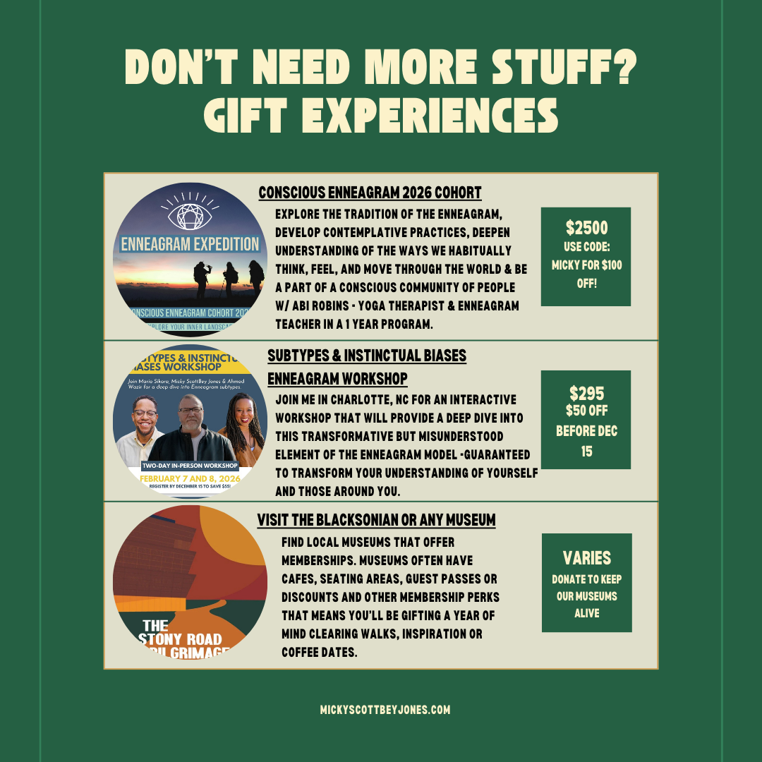 I really just want a way to keep in touch with y’all - former, current and future clients, enneagram mentees and friends - who are supported by the work I do in the world.